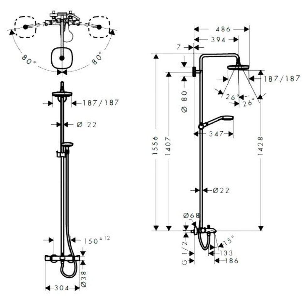 - состоит из: верхний душ, ручной душ, термостат для ванны, штанга для душа, держатель для душа