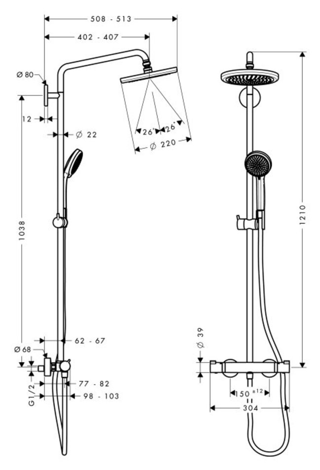 - межосевое подключение 150 мм ± 12 ммПодробнее: https://hans-rus.ru/katalog/croma-showerpipe-220-1jet-ecosmart-9-lmin-s-termostatom-27188000.html