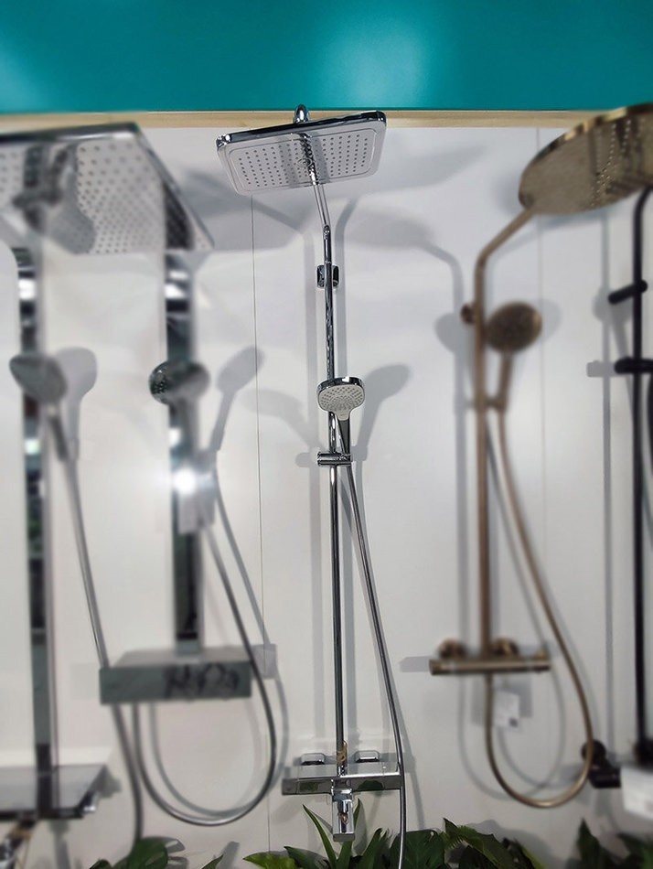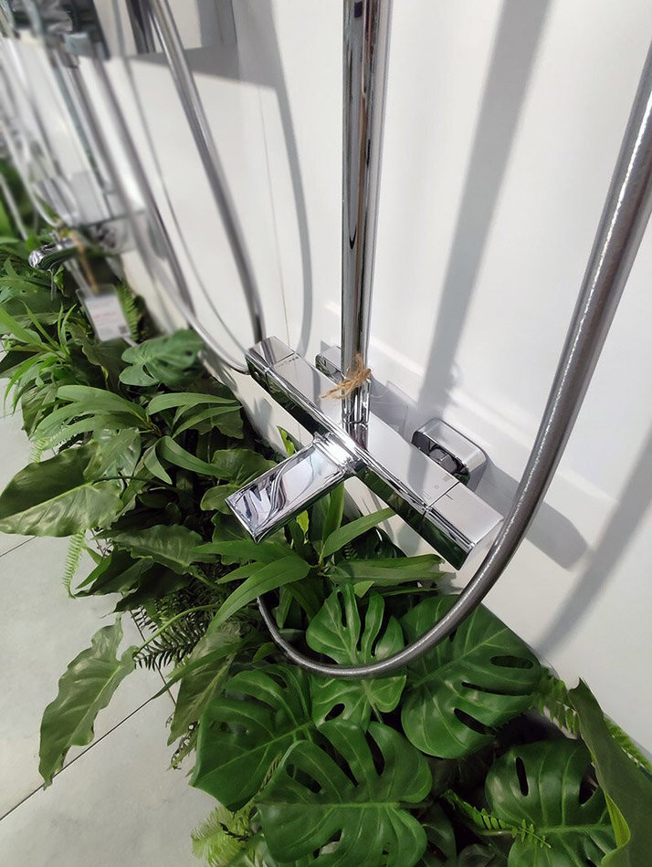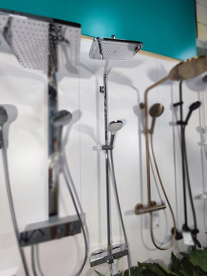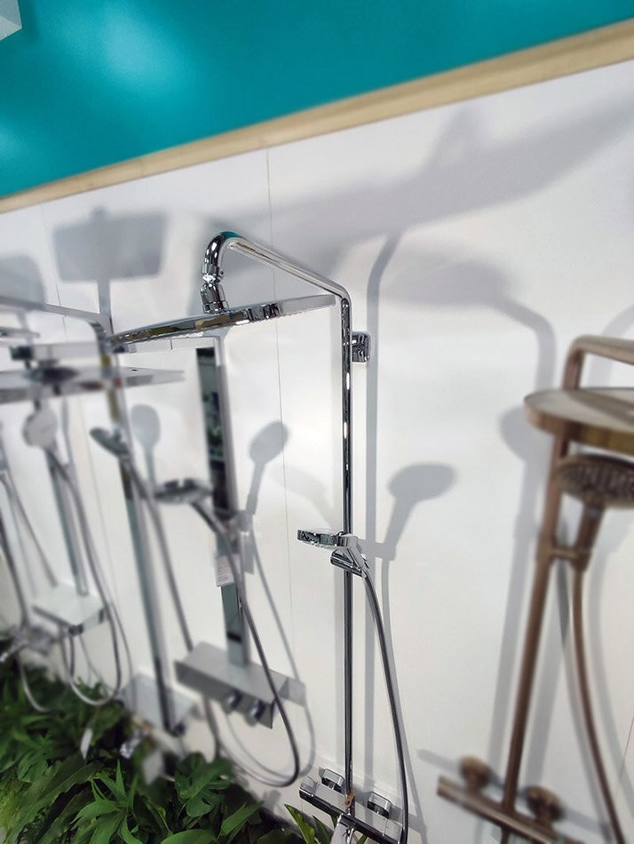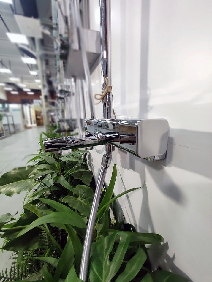 Оснащение: состоит из: верхний душ, ручной душ, термостат для ванны, шланг для душа, держатель, душевая штанга
