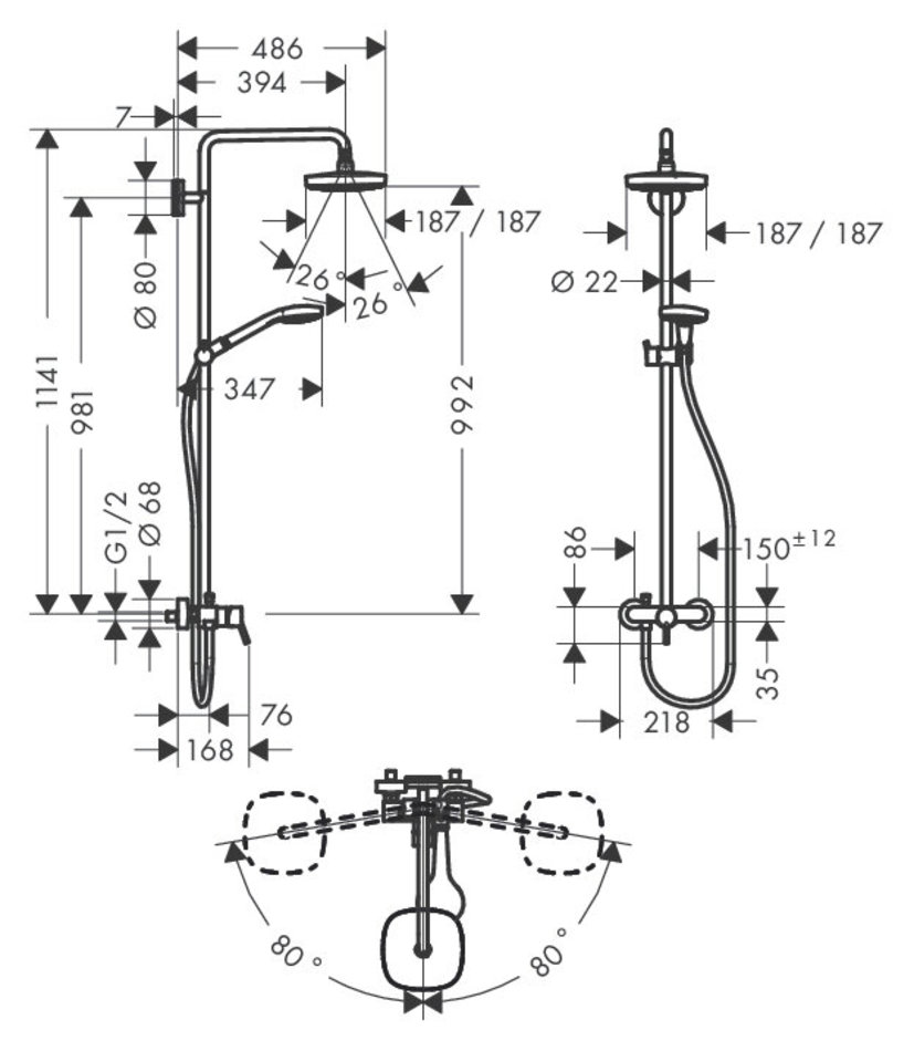 - состоит из: верхний душ, ручной душ, однорычажный смеситель для душа, шланг для душа, держатель для душа, душевая штанга