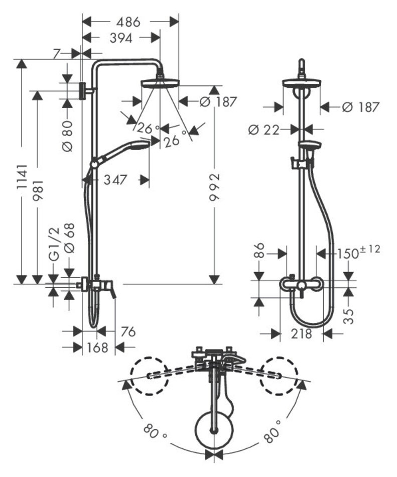 - состоит из: верхний душ, ручной душ, однорычажный смеситель для душа, шланг для душа, держатель для душа, душевая штанга