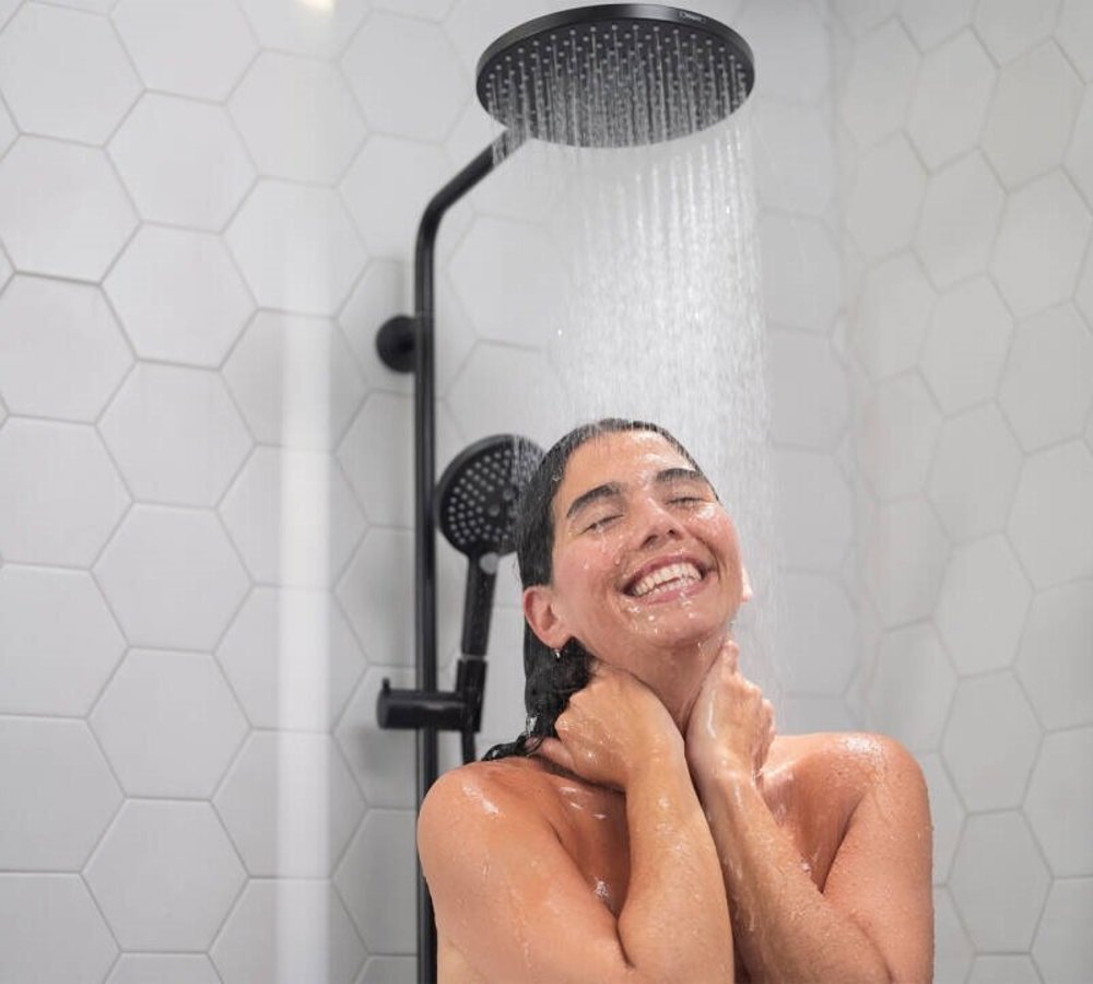 - Комплектация: верхний душ, ручной душ, термостат для душа, шланг для душа, держатель, душевая штанга