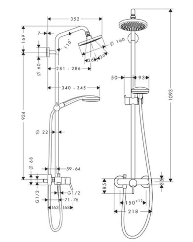 Душевая система Hansgrohe Croma (Крома) Showerpipe 160 27154000Состоит из: