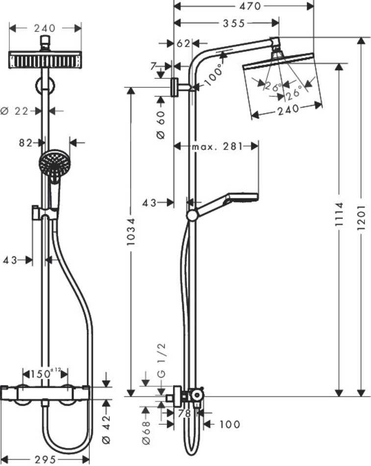 Душевая система Hansgrohe Crometta 27281000 E 240 1jet Showerpipe EcoSmart, термостатическая, хром