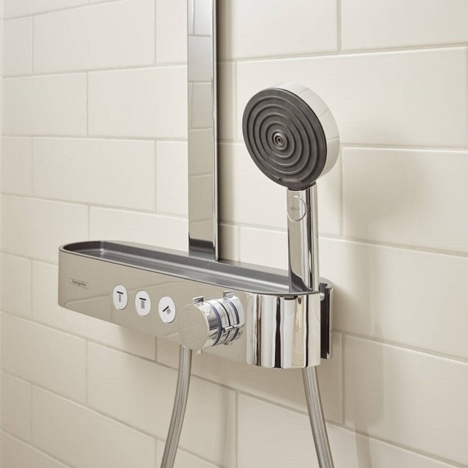 Душевая система Hansgrohe Pulsify 24241000 S, Showerpipe 260 2jet EcoSmart, термостатическая ShowerTablet Select 400, хром