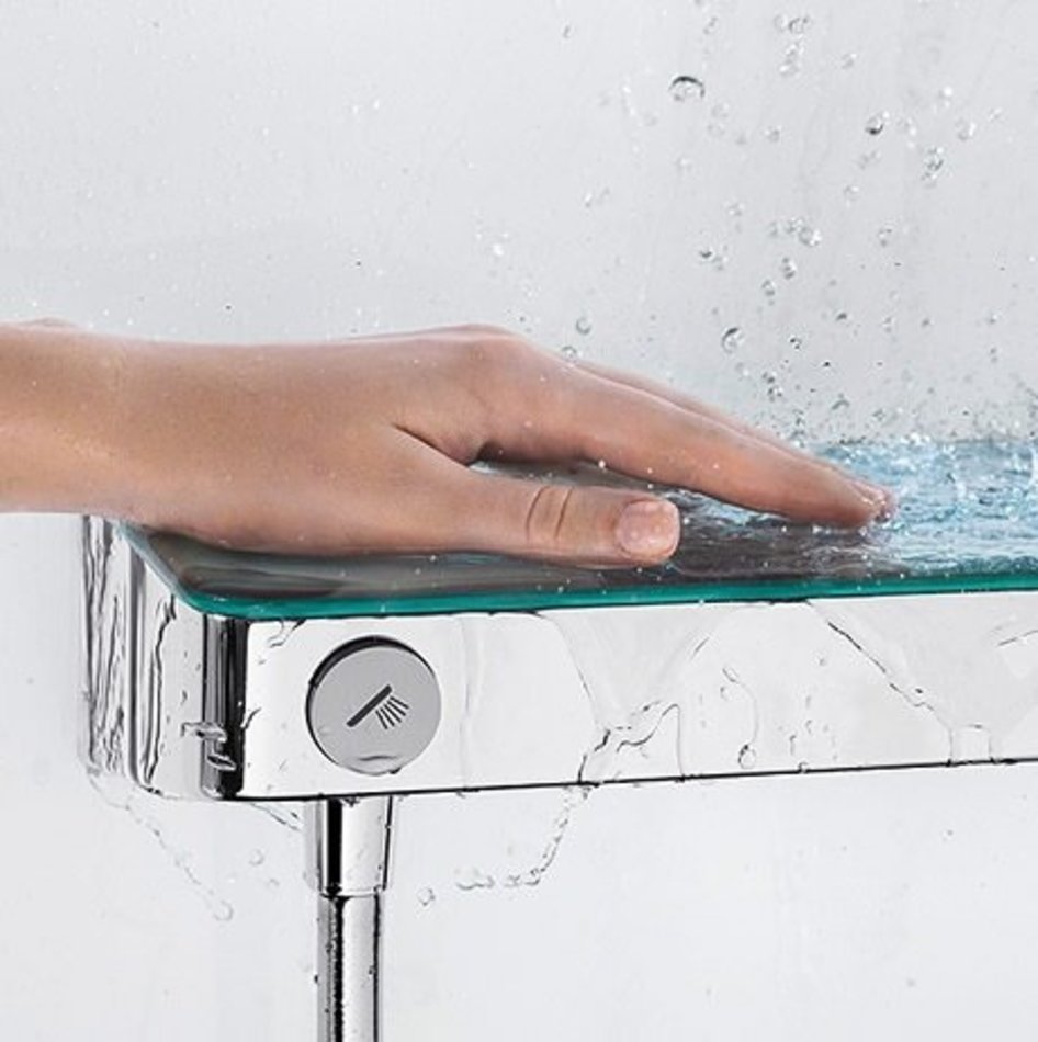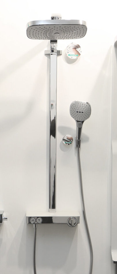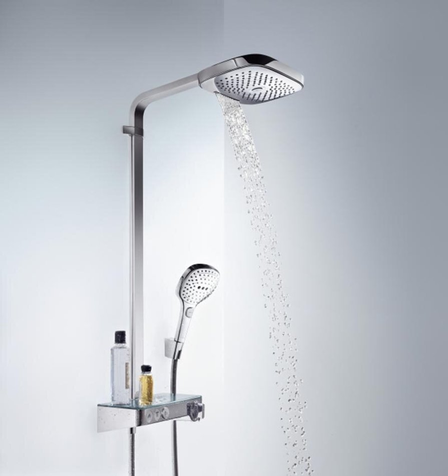 Душевая система Hansgrohe Raindance Select E 27126400 Showerpipe 300 2 jet термостатическая, белое стекло/хром
