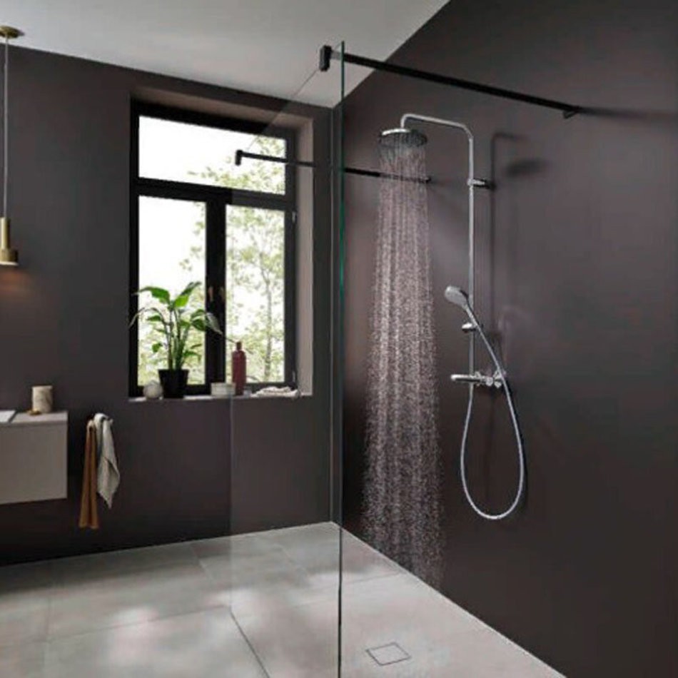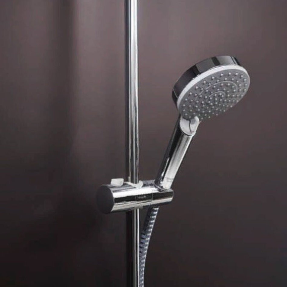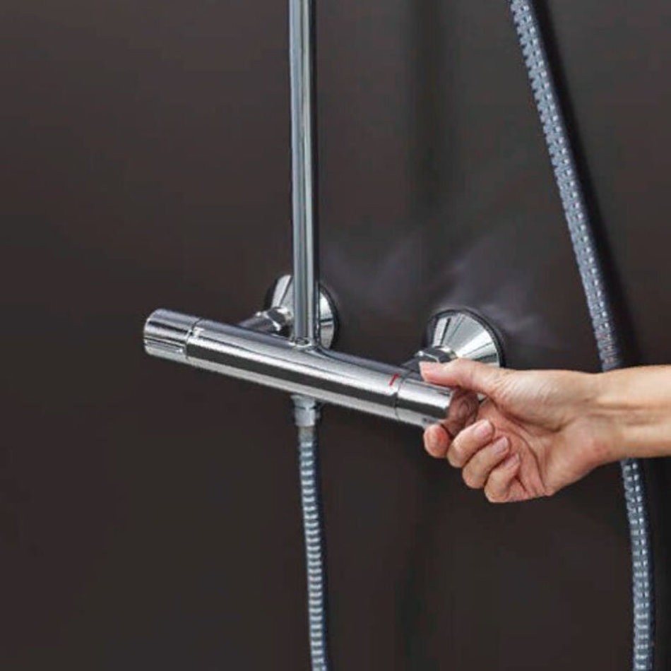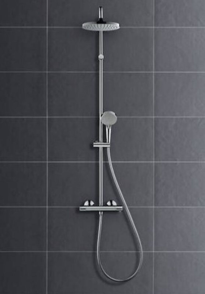 - Комплектация: термостат для душа, верхний душ со штангой, ручной душ, держатель и шланг для душа