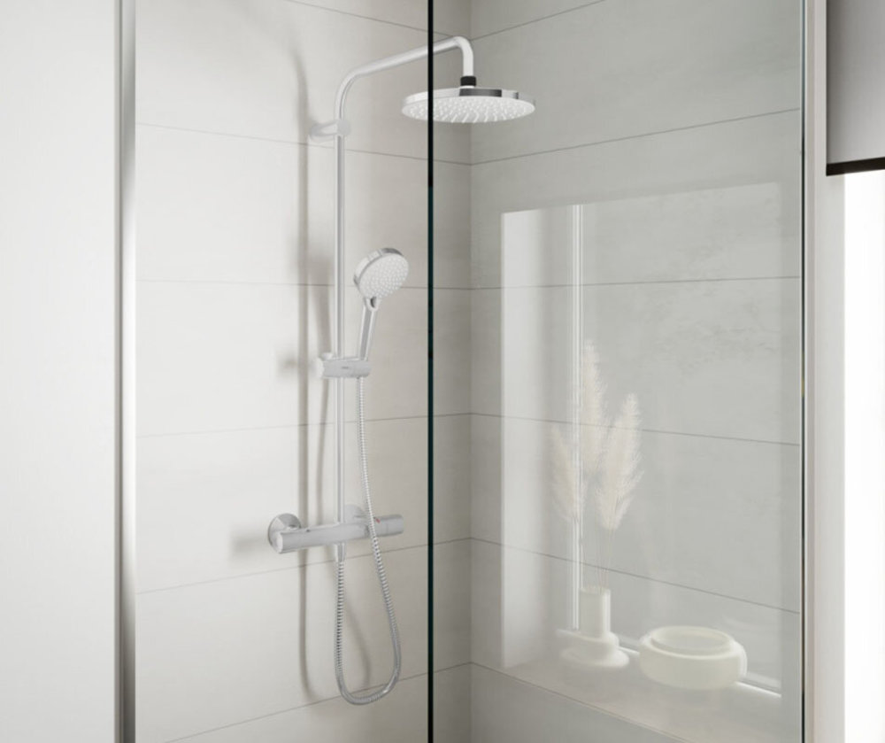 - Комплектация: верхний душ, ручной душ, термостат для душа, штанга для душа, держатель для душа