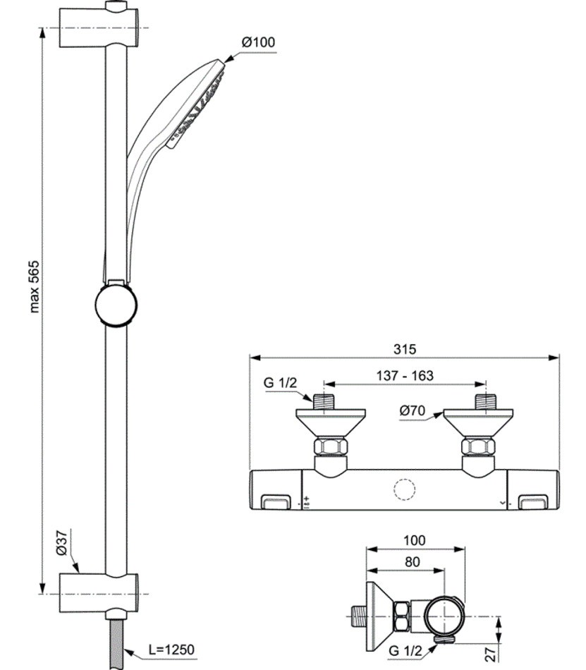 Душевая система Ideal Standard Ceratherm T25 термостатическая, хром глянцевый, A7203AA