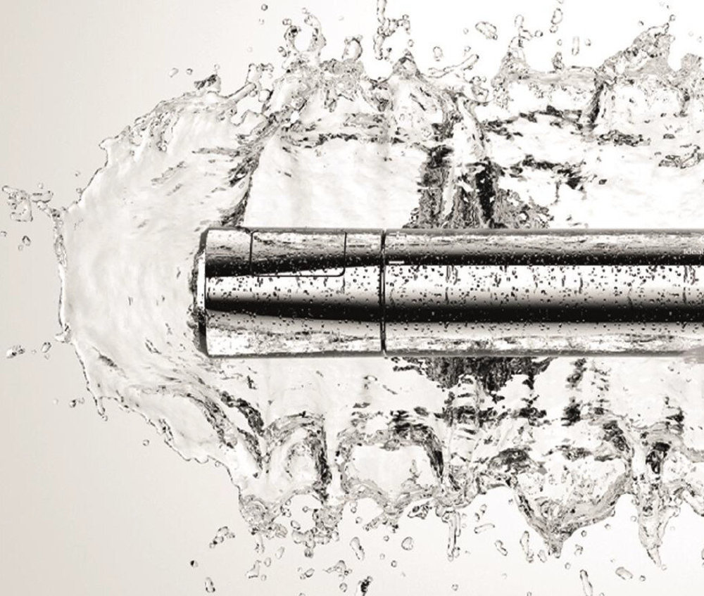 - Термостатический картридж IS, новая технология, затворы на керамических дисках G1/2 180˚, технология "Cool body" ("Холодный корпус"), пластиковые рукоятки с ограничителями температуры (40ºC) и потока воды (50%), встроенный обратный клапан)