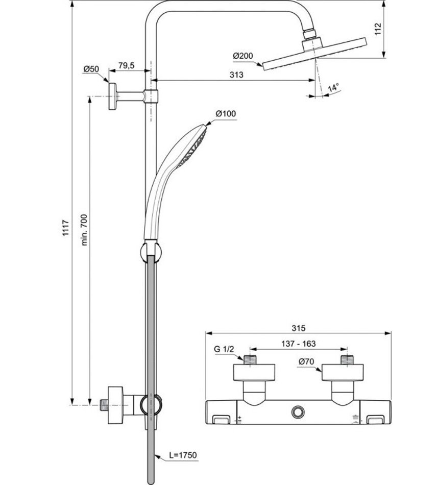 Душевая система Ideal Standard Ceratherm T25 термостатическая, черный матовый, A7545XG