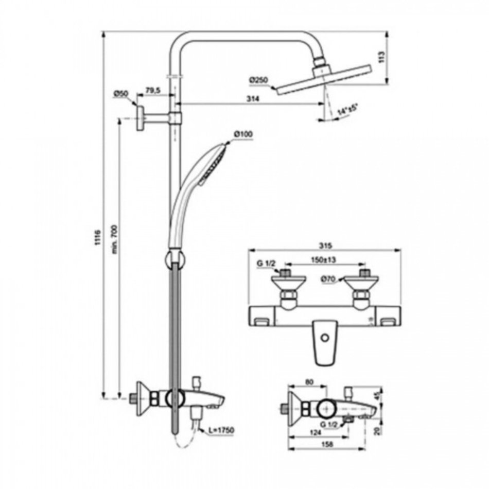 Душевая система Ideal Standard Ceratherm T25 A7629AA, термостатическая, цвет хром
