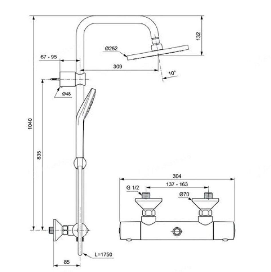 Душевая система в комплекте с настенным термостатическим смесителем для душа с двумя выходами Ceratherm 100 A4639AA: