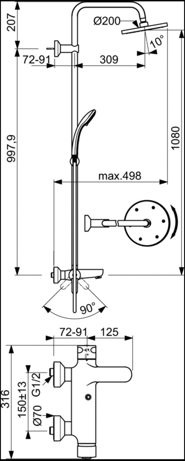 Душевая система Ideal Standard Idealrain B1097AA Eco SL