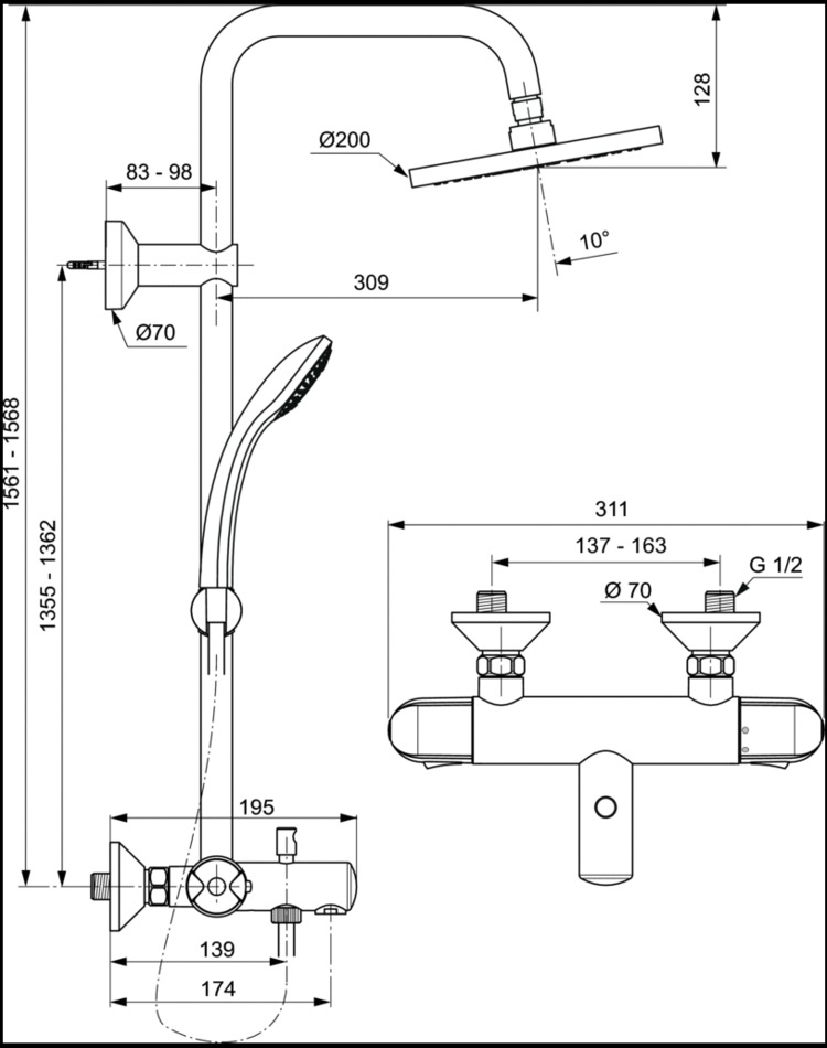 Душевая система Ideal Standard IdealRain ECO A6426AA