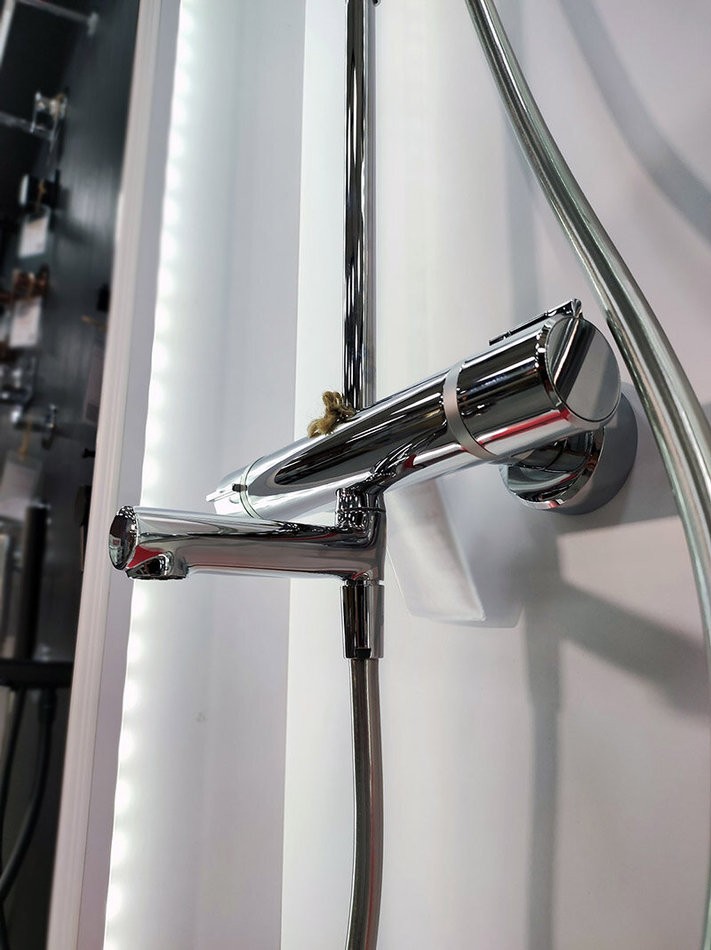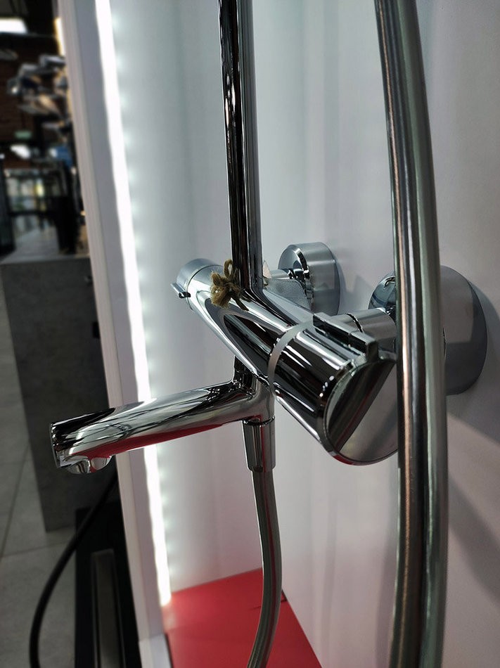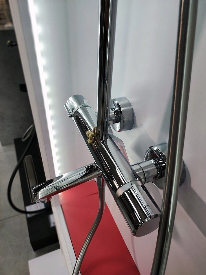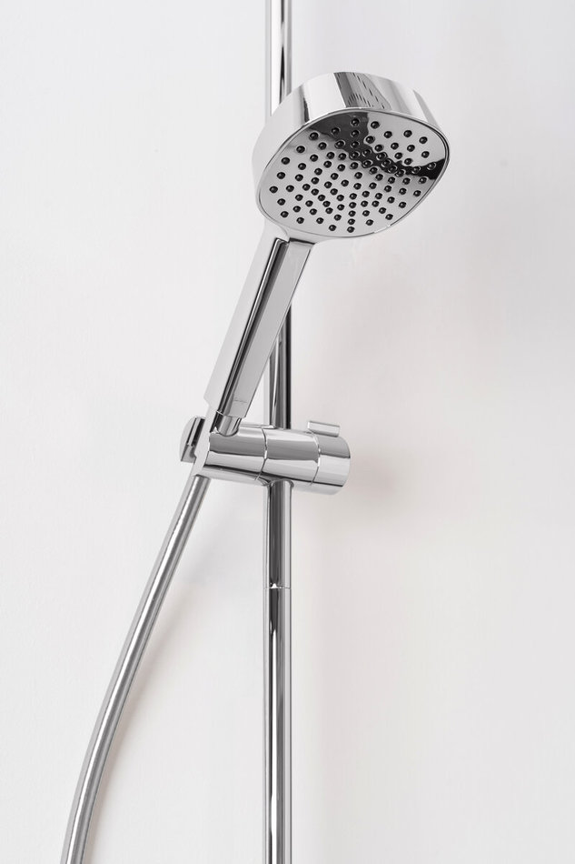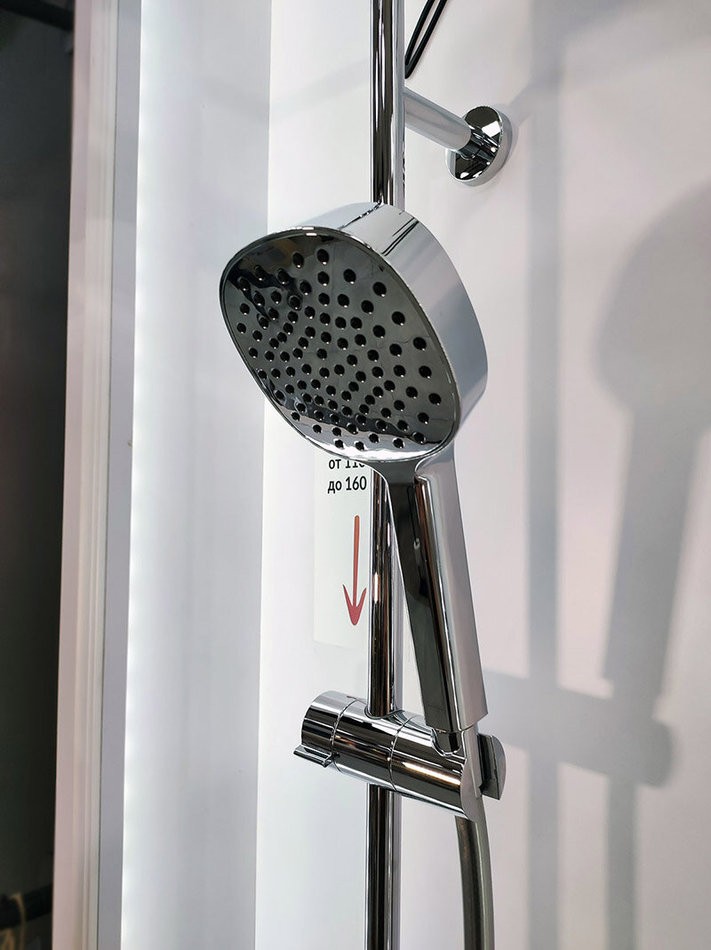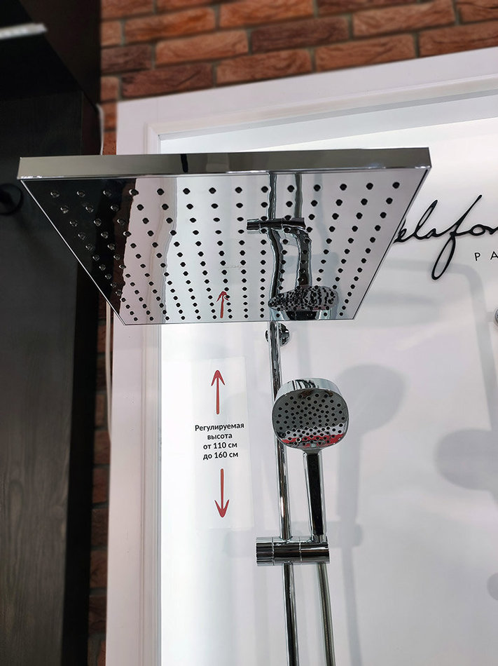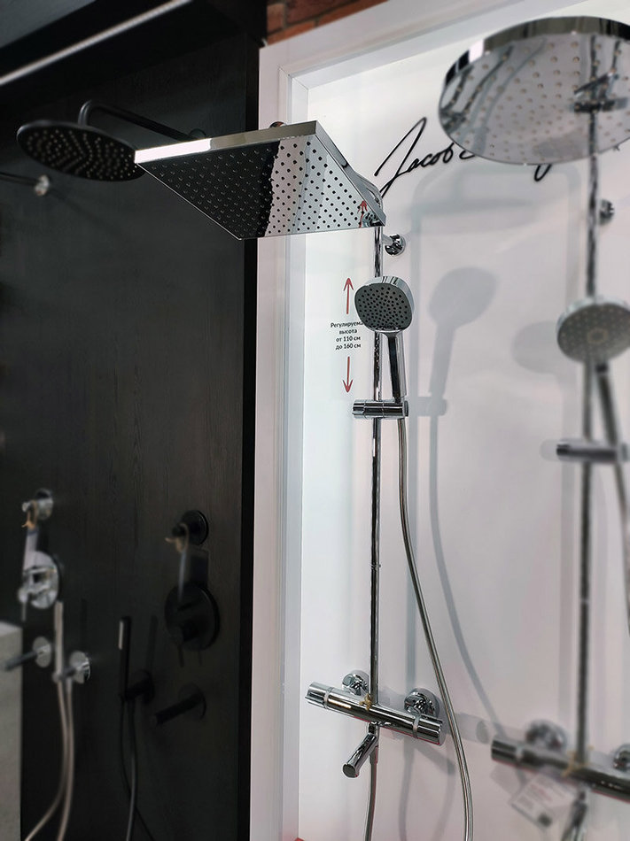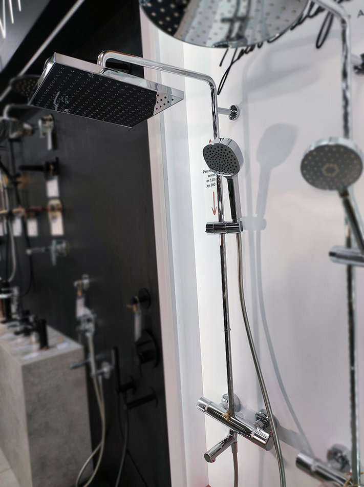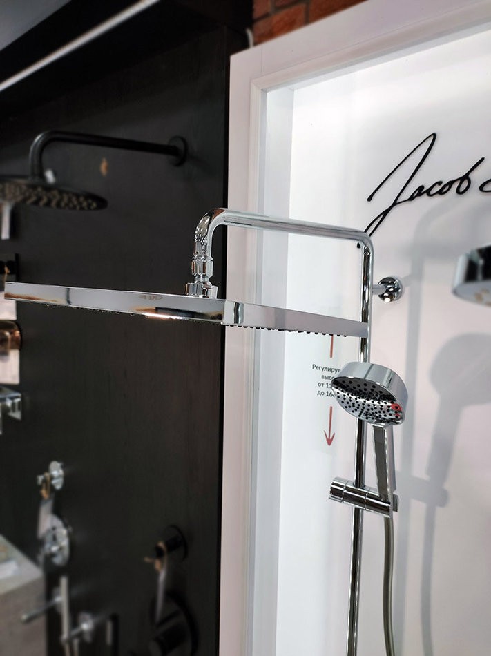 - Геометричный дизайн верхнего и ручного душа дополнит интерьер любой ванной комнаты
