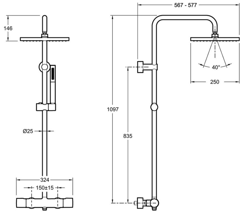 Душевая система Jacob Delafon Brigitte E32850-CP с термостатическим смесителем