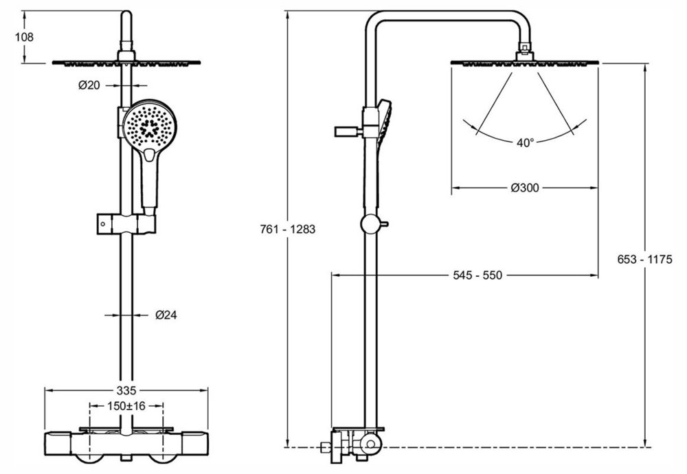 Душевая система Jacob Delafon Metro E26588-CP с термостатическим смесителем