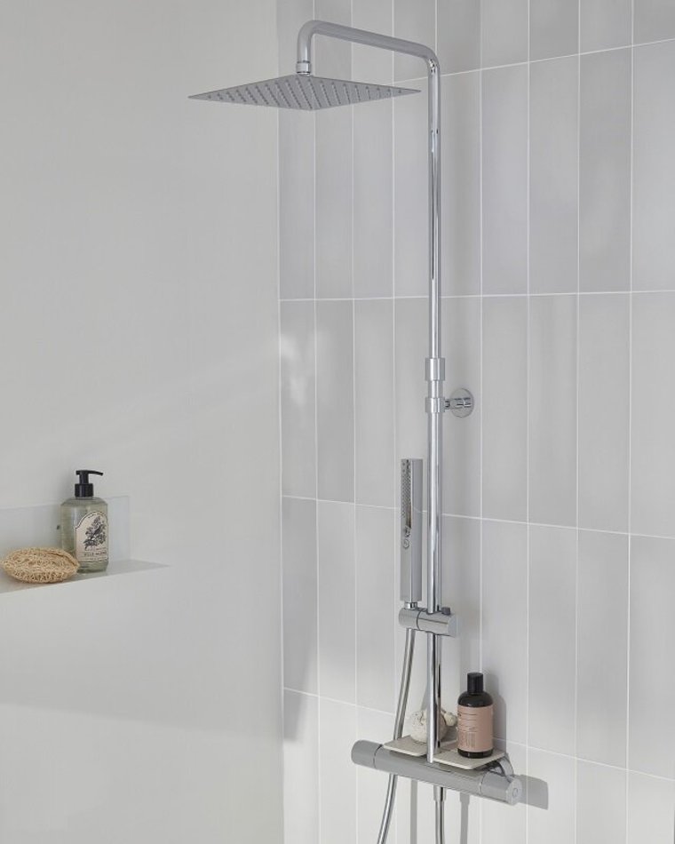 Душевая система Jacob Delafon Metro с полкой и термостатическим смесителем, хром, E26595-CP