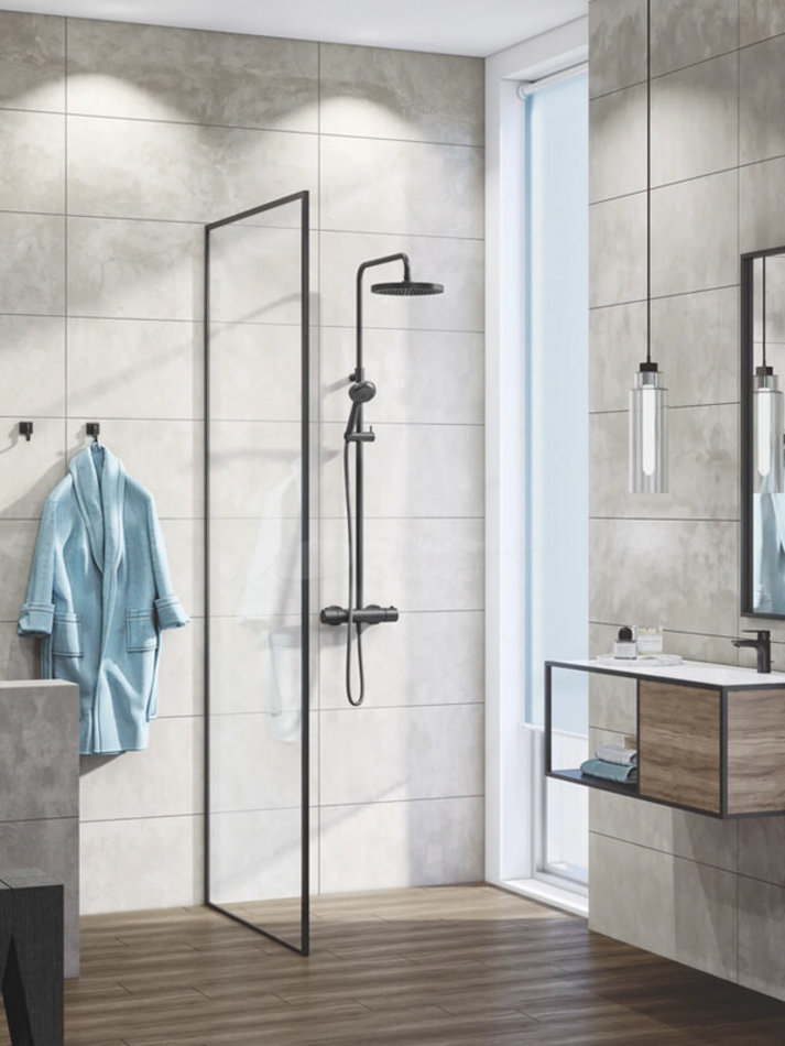 Душевая система Kludi Logo 6808239-00 Dual Shower System, с термостатом, черная матовая