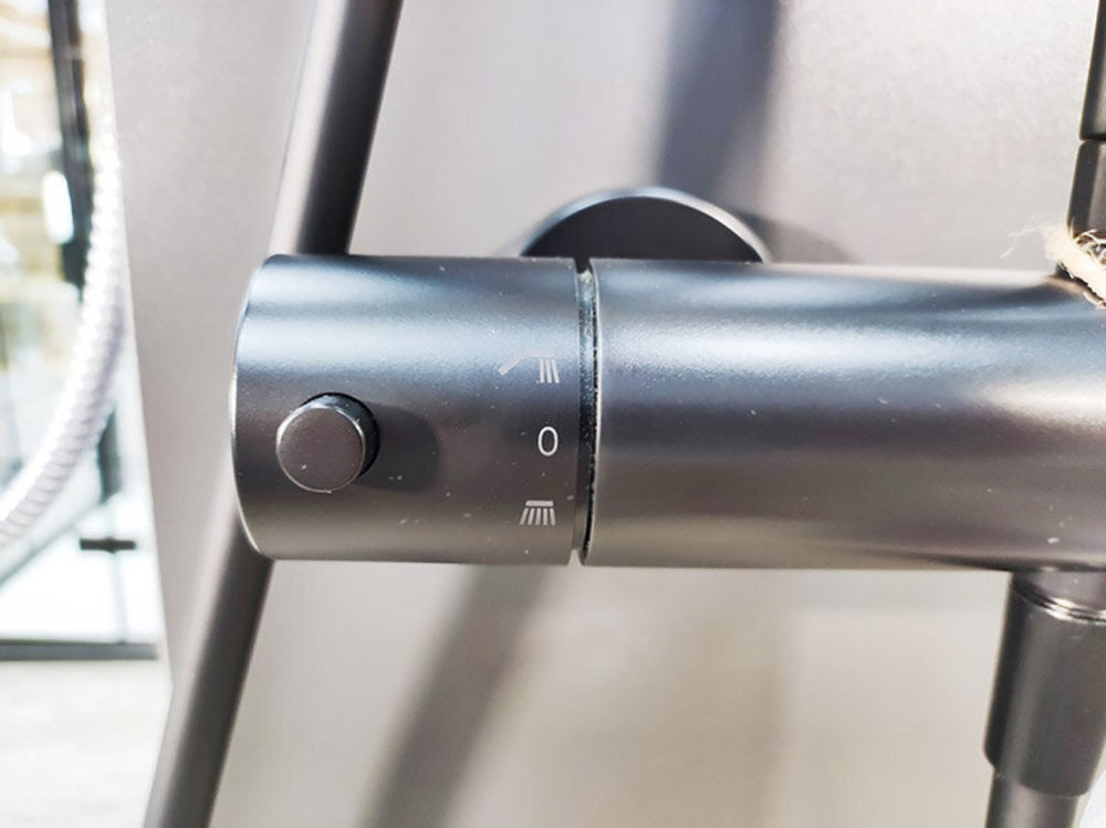 - Рукоятка выбора температуры с ограничителем горячей воды при 38°C