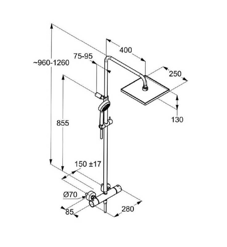 - Диапазон регулировки: cтупенчатая регулировка кронштейна по горизонтали в диапазоне 360°, 6 положений (шаг - 60°); верхний душ 10°