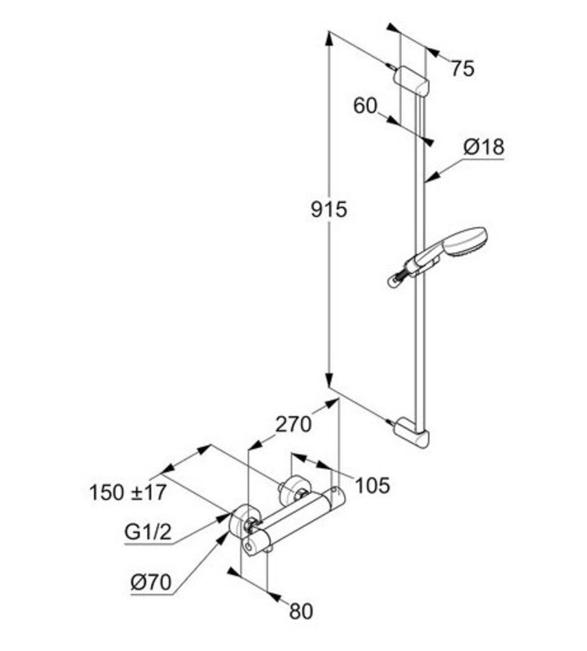 Душевая система Kludi Logo 6857805-00 Shower Duo System с термостатом, штанга 90 см, хром