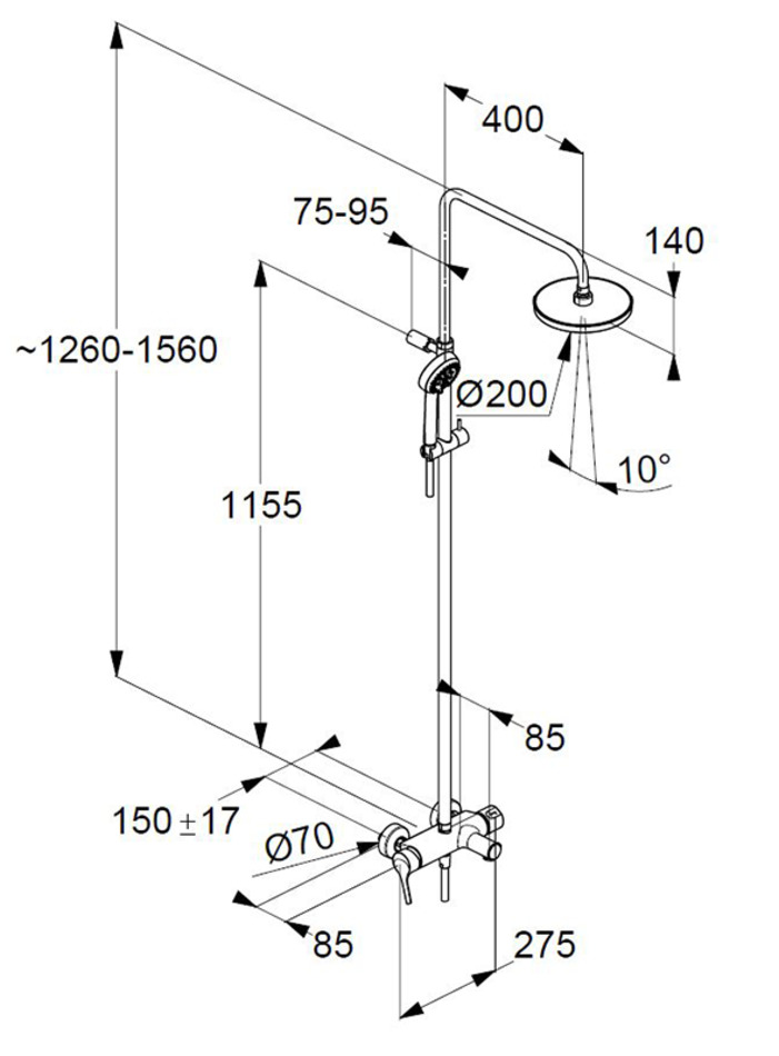 - DUAL SHOWER SYSTEM с керамическим картриджем и изливом для ванны