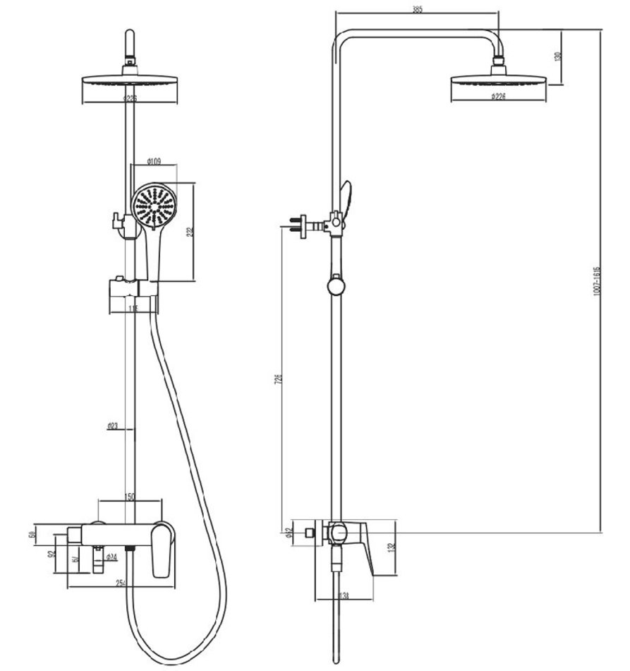 - Верхняя поворотная душевая лейка «Тропический дождь» 226х226 мм