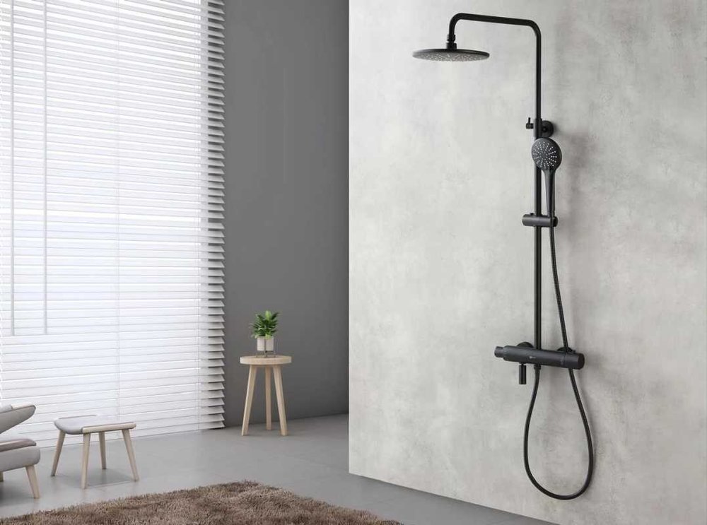 Душевая система Lemark Bronx, термостататическая, с изливом, черный, LM3772BL