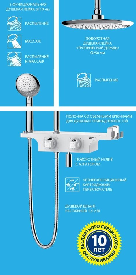 Душевая система Lemark Tropic LM7008C для ванны и душа, с изливом, хром/белый