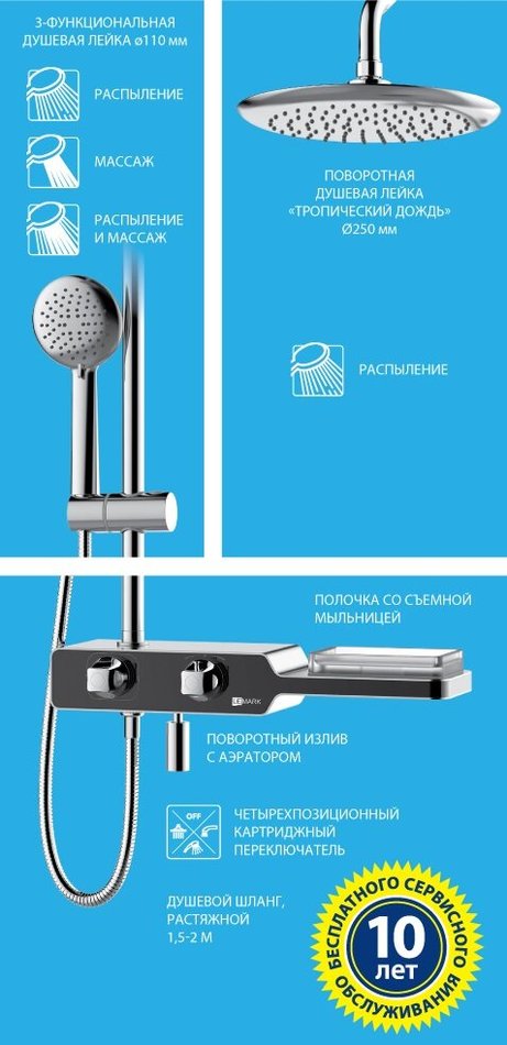 Душевая система Lemark Tropic LM7009C, с изливом, хром/черный