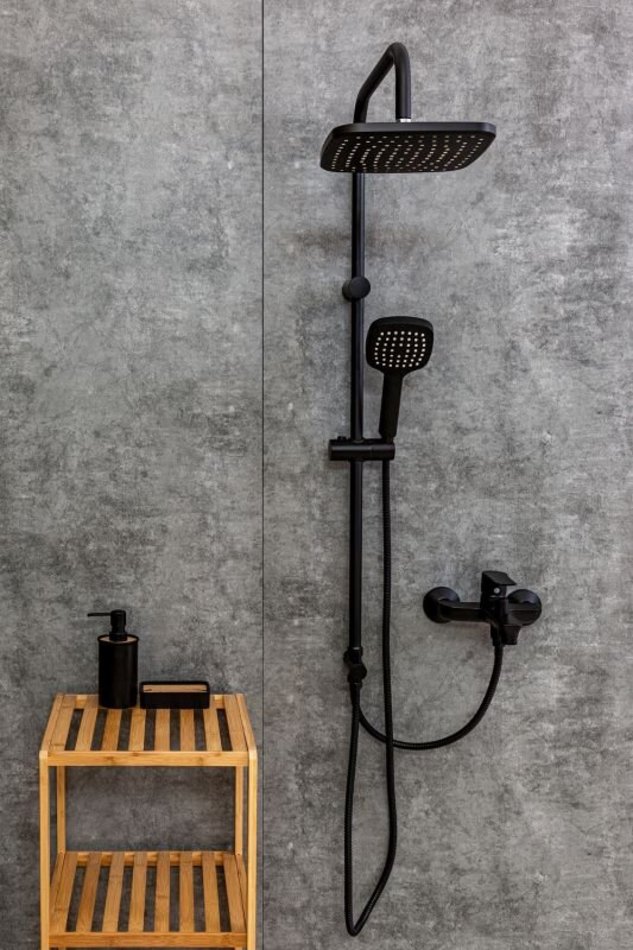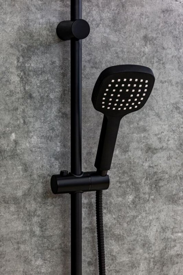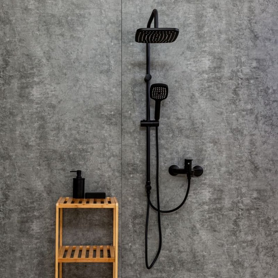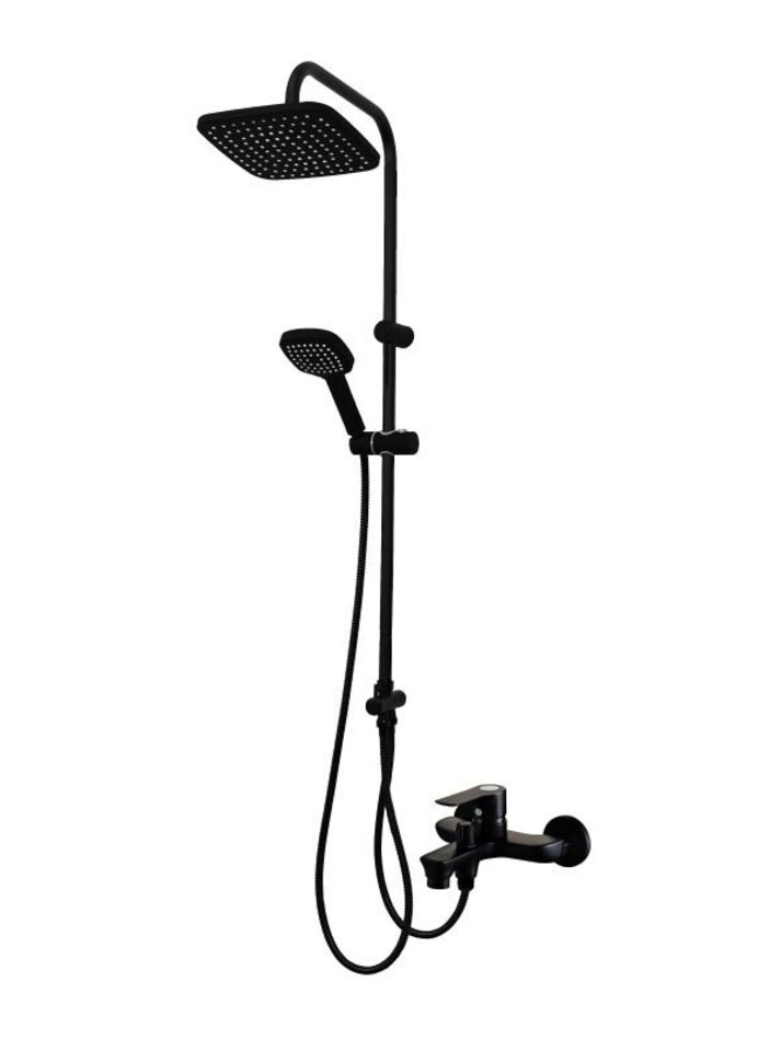Душевая система Orange Aristo в комплекте: однозахватный смеситель для ванны с изливом (190 мм) и керамическим картриджем, верхний душ 230х230 мм и ручной душ 120 мм (1 режим) с защитой от известкового налета, регулируемый по наклону держатель верхнего и ручного душа, душевой шланг 1,5 м (в металлической оплетке, с защитой от перекручивания), керамический дивертор. Штанга 970 мм с возможностью установки в старые отверстия. Цвет матовый черный, за которым просто ухаживать мягкой салфеткой, получен порошковой окраской с многоступенчатой системой подготовки и высокотемпературной обработкой.