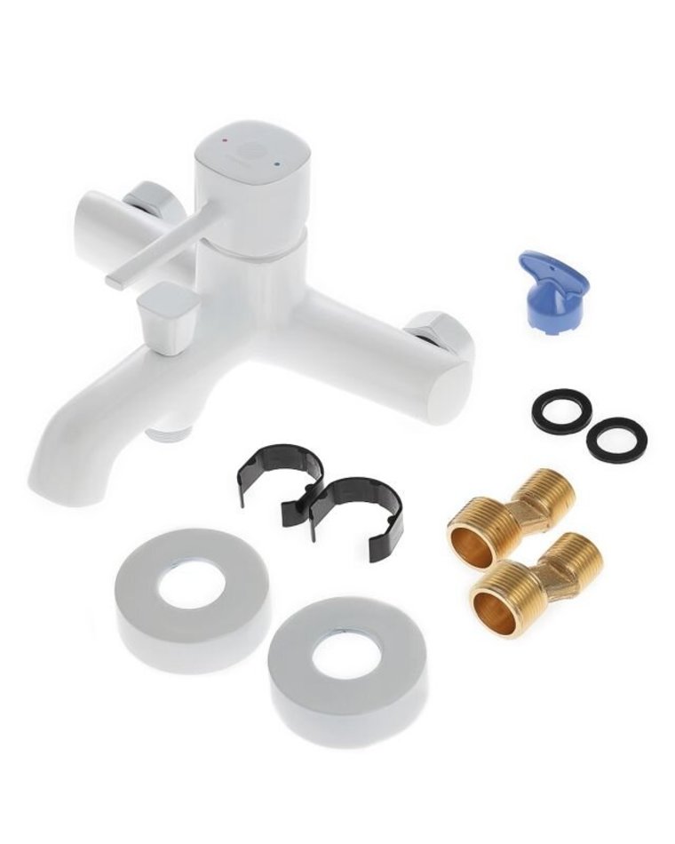 Комплектация: верхний душ, шланг для душа, смеситель с изливом, душевая лейка, душевая штанга, держатель лейки, держатели штанги, эксцентрики, инструкция