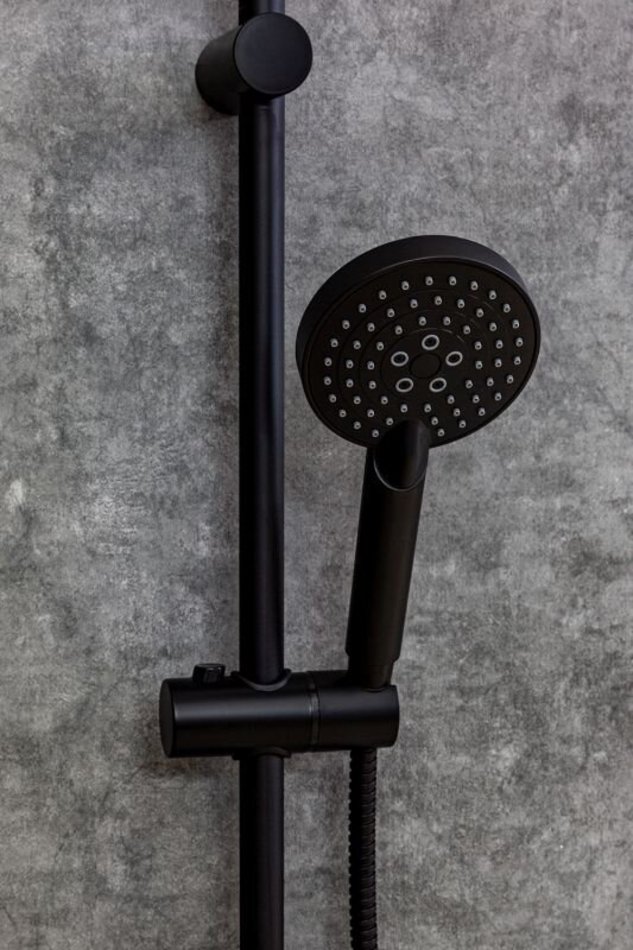 Душевая система Orange Karl со смесителем для ванны/душа в цвете черный матовый. Верхний душ (d200 мм - 2 режима) создаёт эффект тропического дождя, что дарит непередаваемые эмоции во время ежедневных процедур. Ручной душ 100 мм (3 режима) на гибком полутораметровом шланге (в металлической оплетке) с защитой от перекручивания. Держатели верхнего и ручного душа с регулировкой угла наклона. Штанга 970 мм с подвижным держателем (возможность установки в старые отверстия). Модное на сегодняшний день покрытие чёрного цвета, за которым просто ухаживать мягкой салфеткой, получено методом порошковой окраски с многоступенчатой системой подготовки и высокотемпературной обработкой.