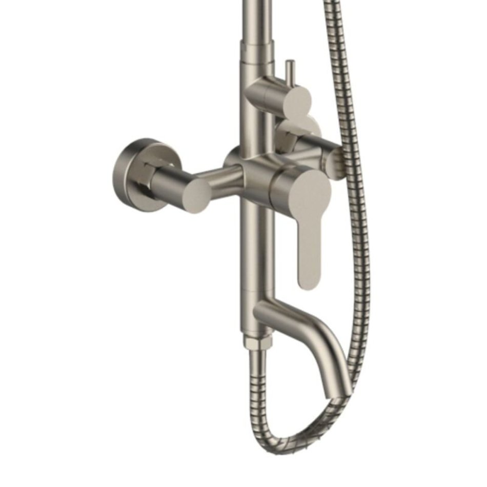 Классическая душевая система Orange Steel M99-91ni предусматривает все необходимое для оборудвания современного интерьера ванной комнаты. Смеситель в комлекте имеет поворотный излив, что делает его использование максимально удобным. Дополняет его телескопическая штанга с регулируемым углом наклона для крепления верхнего душа d200, классический ручной душ и шланг 150 см и регулируемый по высоте держатель для их крепления. Переключение между режимами подачи воды кран-душ осуществляется с помощью поворота излива, что облегчает смеситель с точки зрения дизайна и сложности конструкции. Модель имеет простое в уходе матовое никелиевое покрытие.