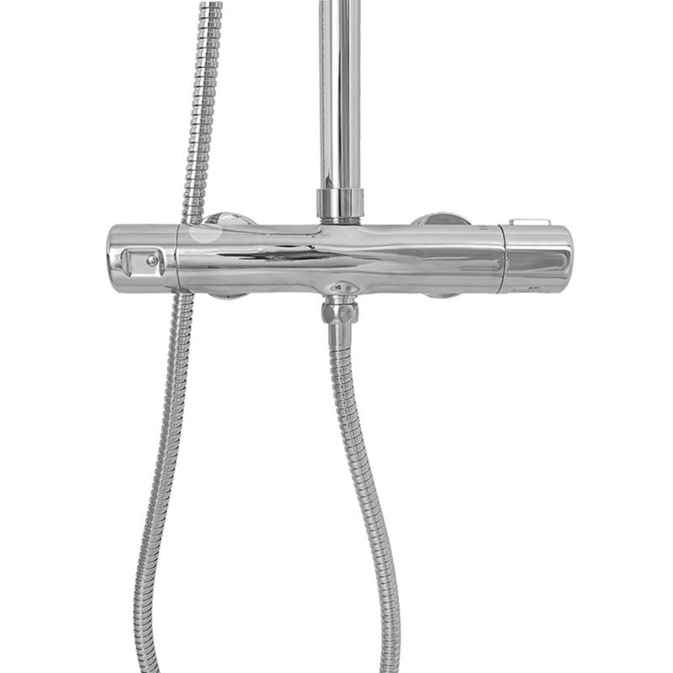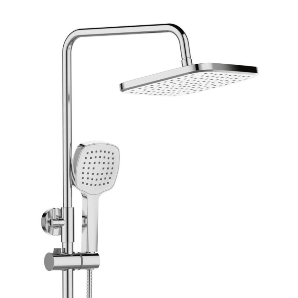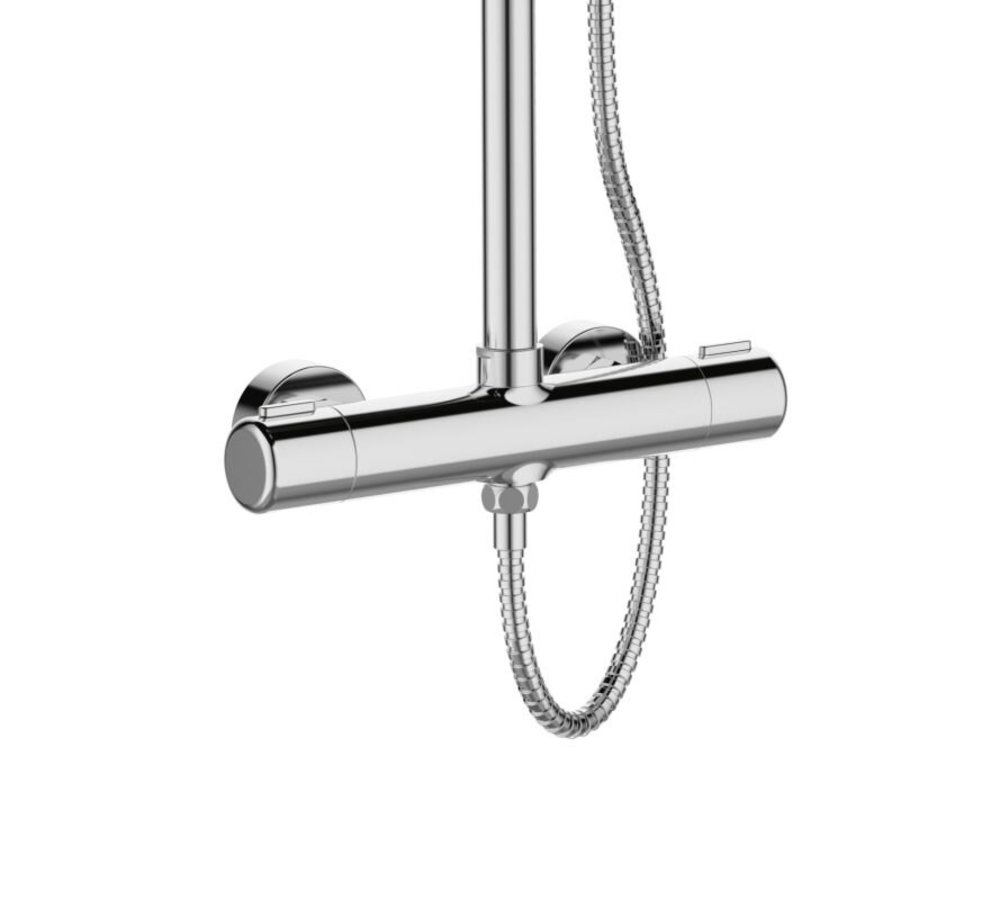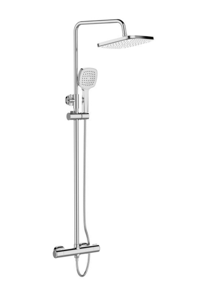 Orange T02S4-912cr Душевая система с термостатом в комплекте: смеситель с термостатом без излива, телескопическая штанга, верхний душ d265 мм с регулируемым углом наклона, ручной душ, регулируемый по высоте и наклону держатель; шланг 1500 мм в металлической оплетке.