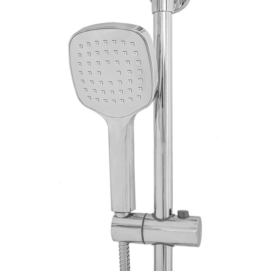 Душевая система Orange Thermo: термостат (управление осуществляется с помощью двух стильных ручек: левая - регулирует напор воды, правая - управляет температурой, создавая идеальные условия для принятия водных процедур), телескопическая штанга 865-1250 мм, верхний душ (230х230 мм) с регулировкой угла наклона и силиконовыми форсунками (защита от известкового налета), ручной душ d 120 мм (1 режим), регулируемый по высоте и углу наклона держатель ручного душа, шланг 1500 мм в металлической оплетке с защитой от перекручивания. Цвет глянцевый хром.