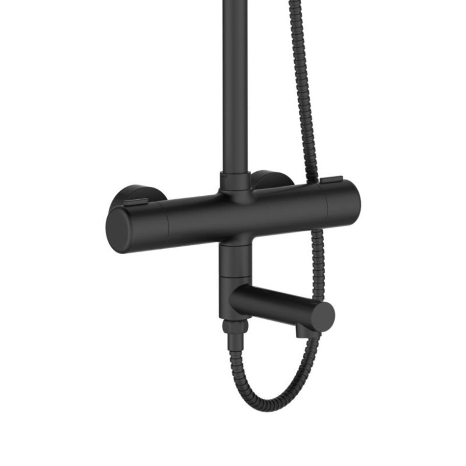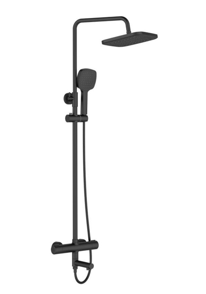 Душевая система Orange Thermo T02S4-911b с термостатом, с поворотным изливом, черный матовый
