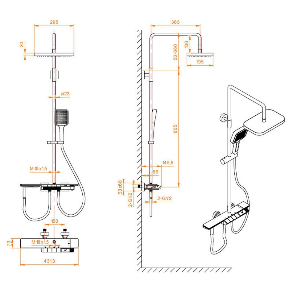 Душевая система RGW Shower Panels 51140135-01 SP-35, термостатическая, цвет хром