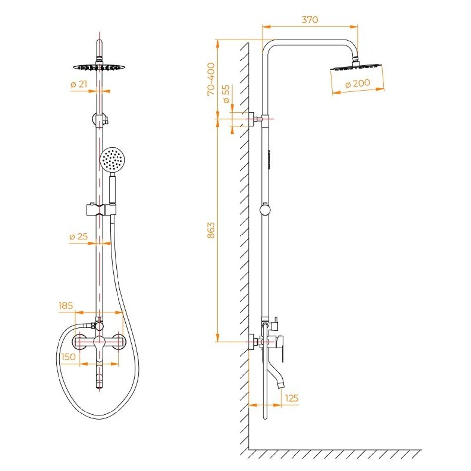 - Головной душ выполнен из нержавеющей стали AISI 304 оснащён со шарнирным креплением, что позволяет выбрать необходимый угол направления воды;