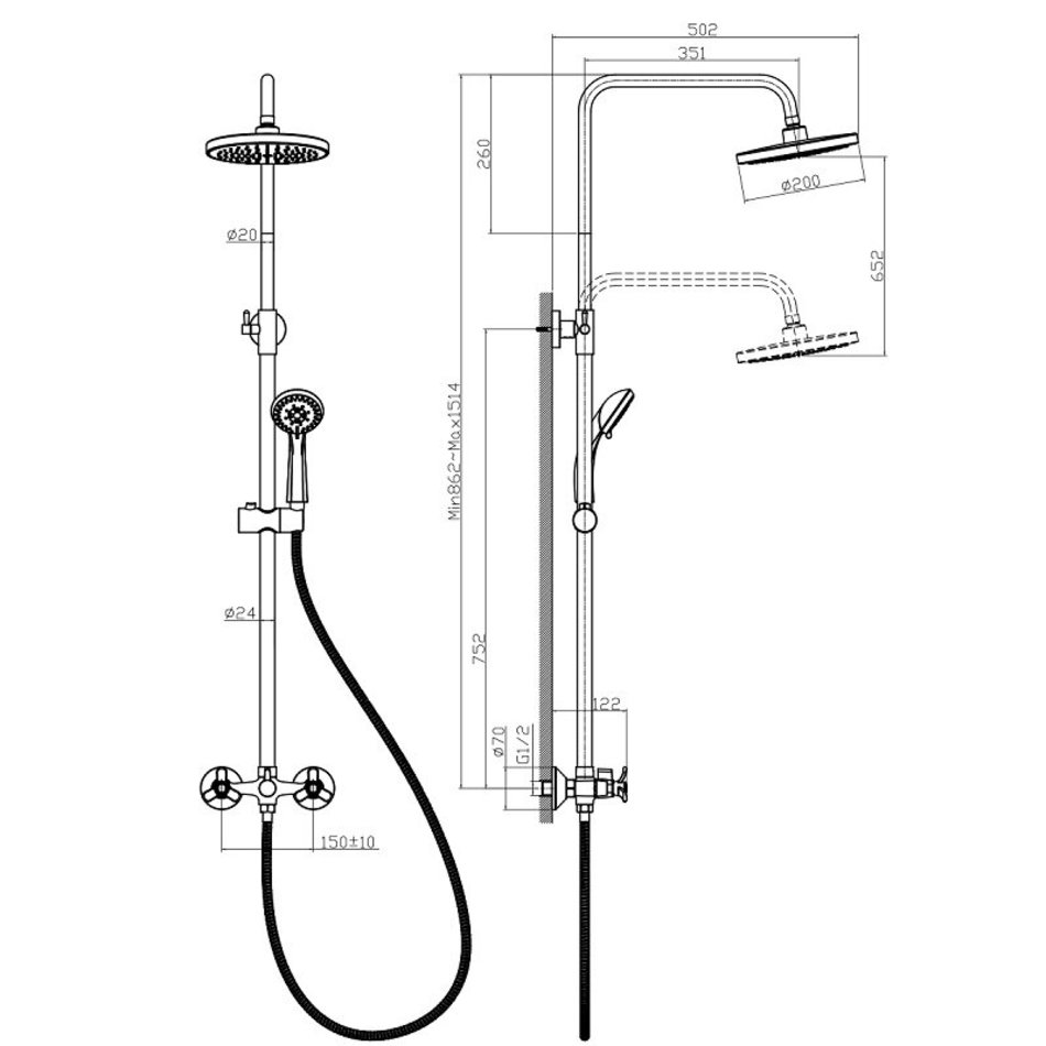 - Верхний душ: 20 см в диаметре, поворотный, круглый