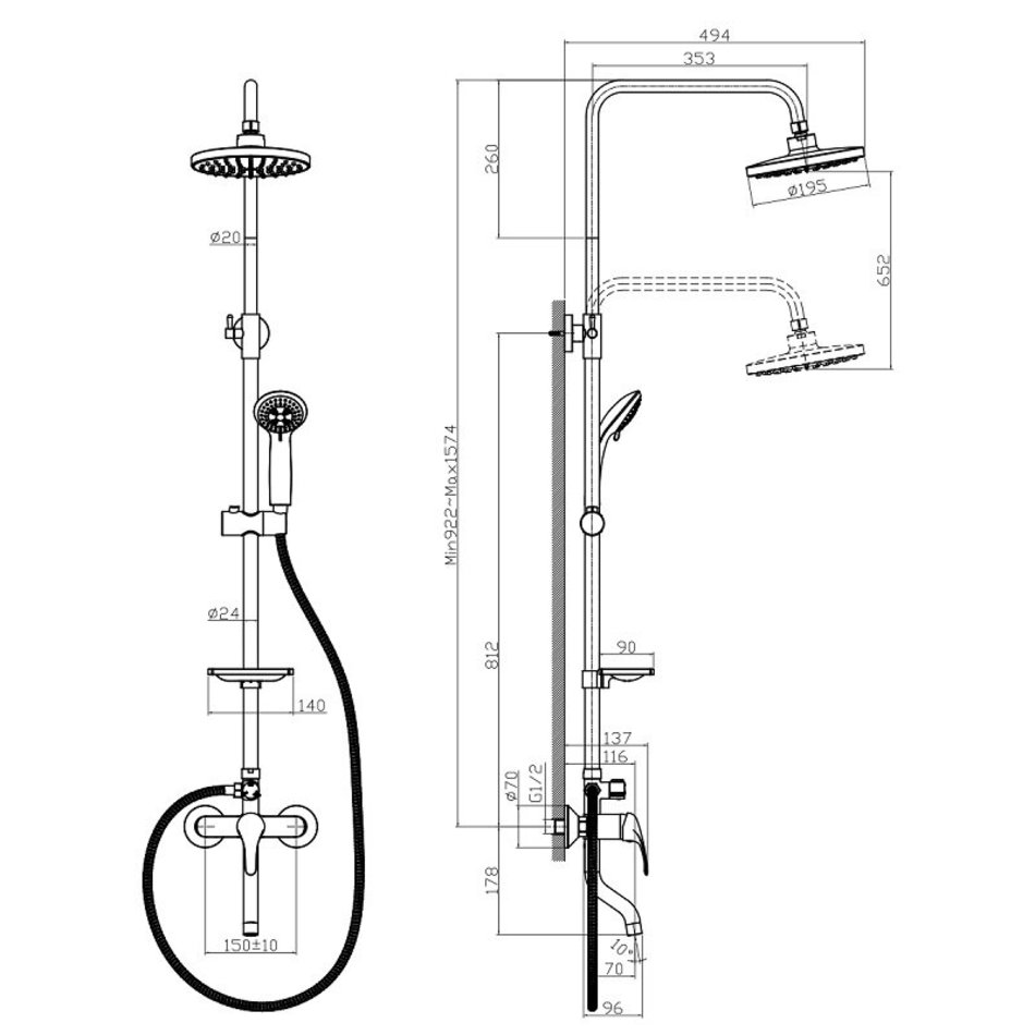 - Верхний душ: 19.5 x 19.5 см, поворотный, круглый