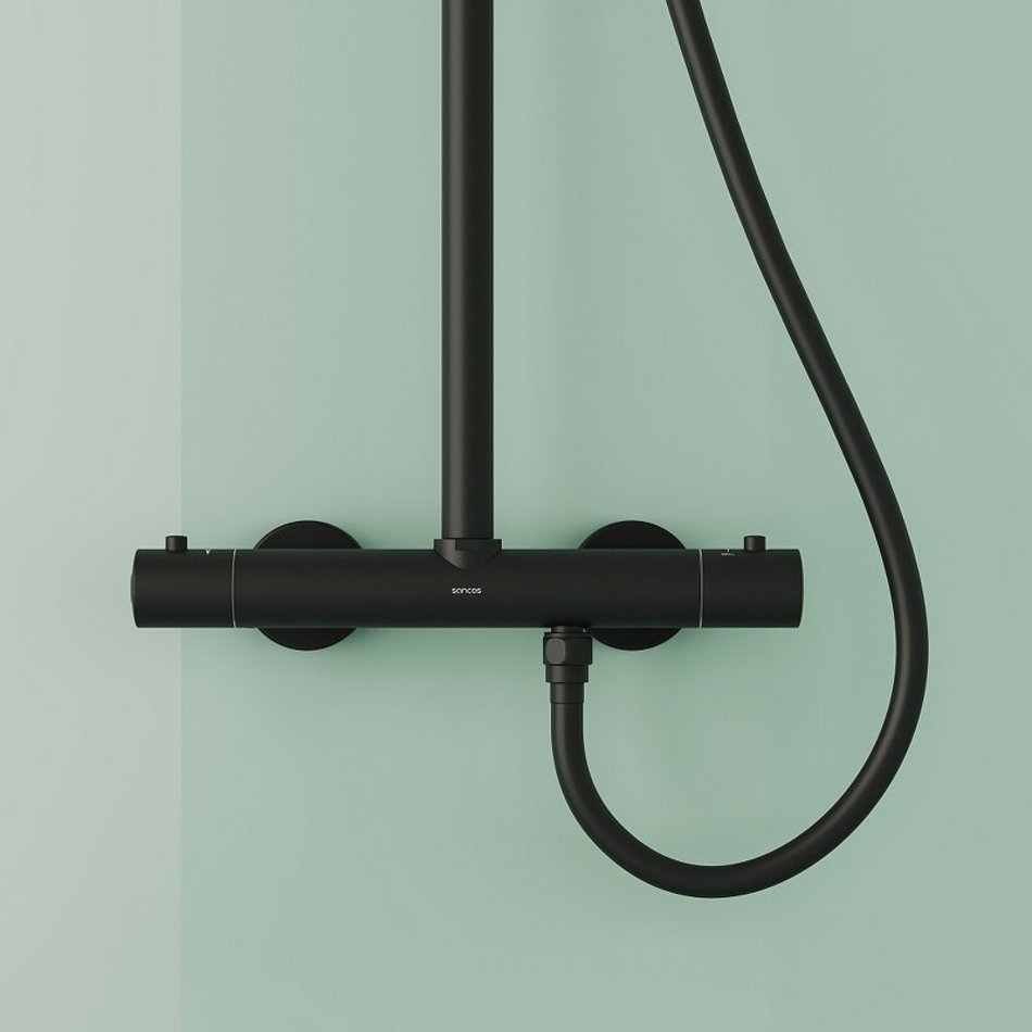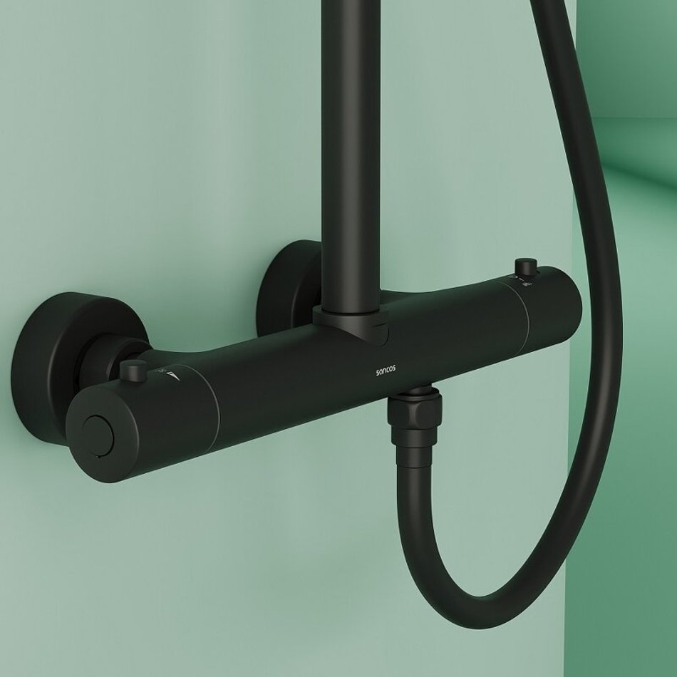Душевая система Sancos Game SC3002MB, термостатическая, цвет черный матовый