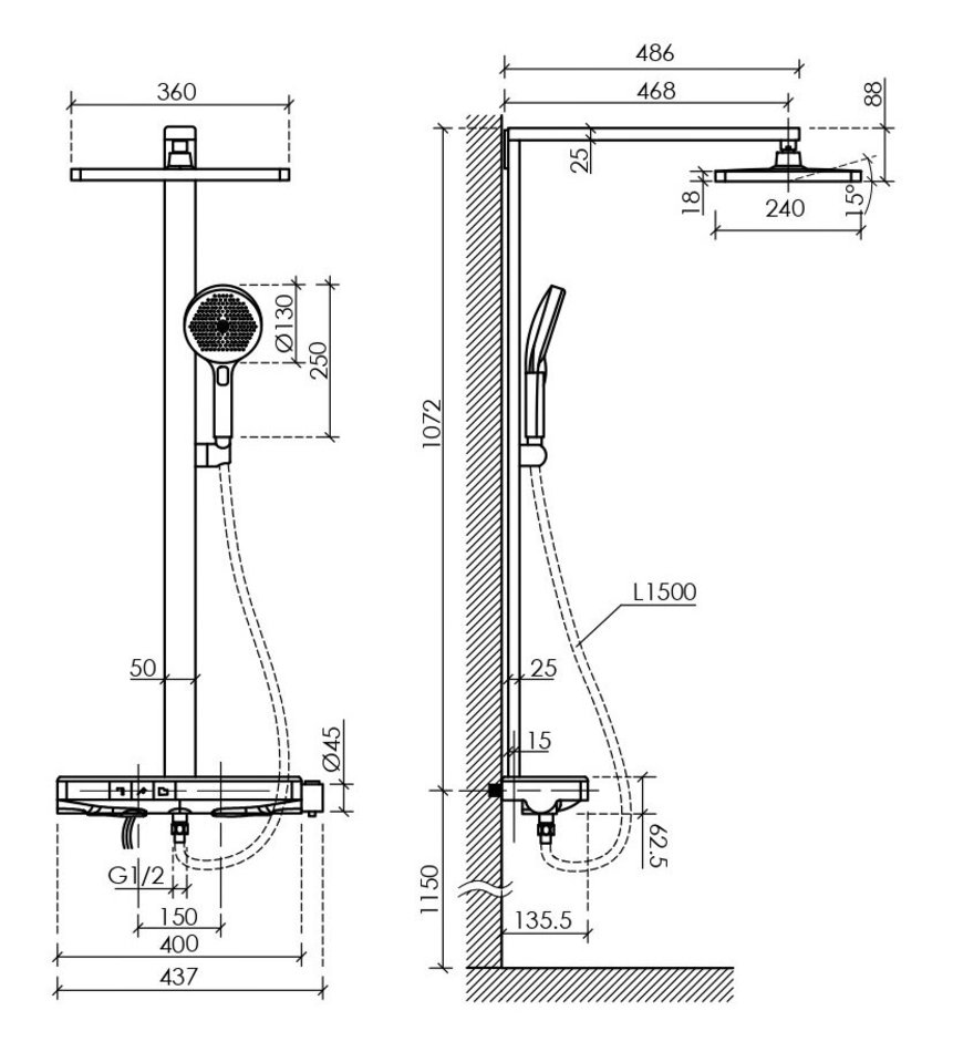 Душевая система Sancos Vos SC6100MB, термостатическая, черный матовый