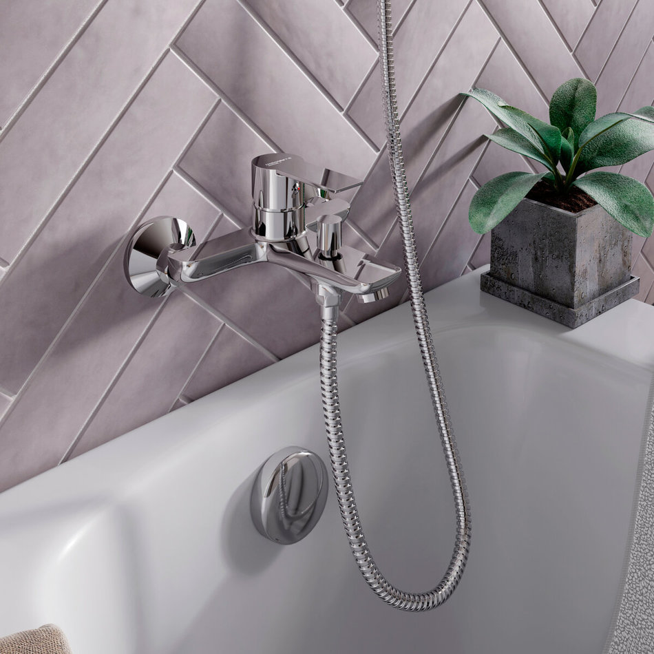 Смеситель для ванны с душем STWORKI by Damixa Хельсинки HFHS10000 хром однорычажный, настенный, латунь, с аэратором