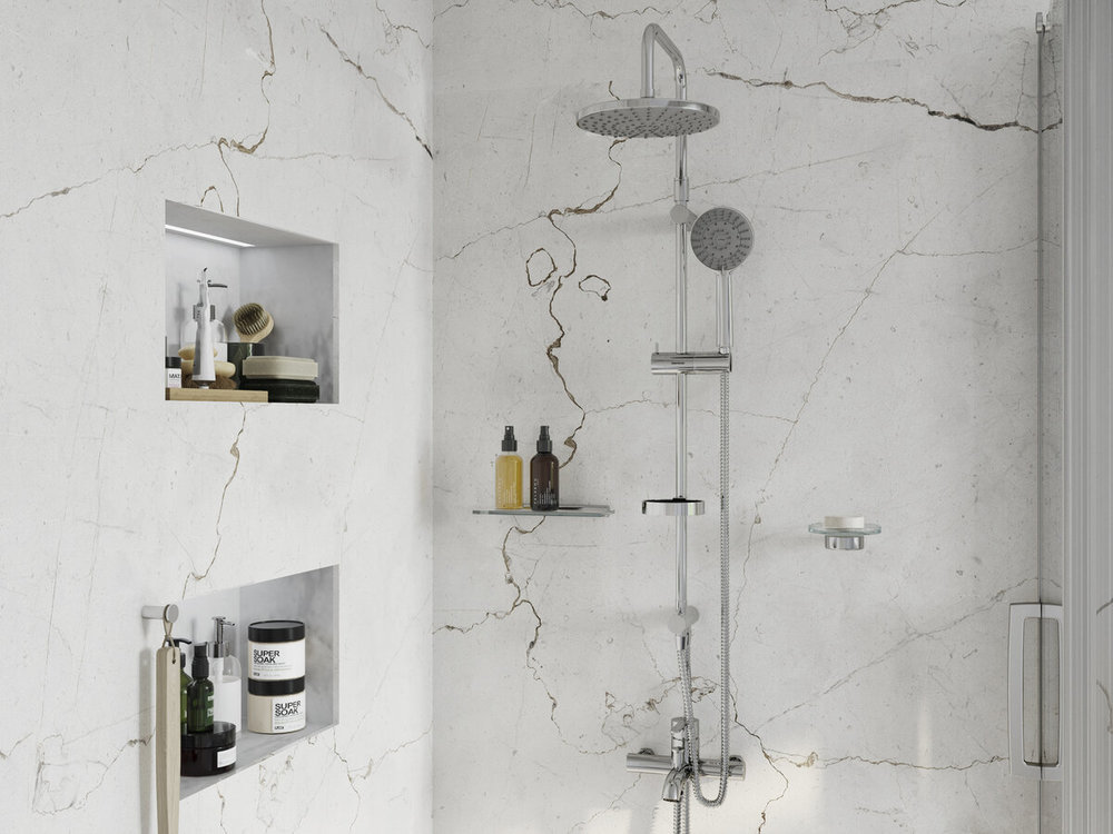 Душевая стойка STWORKI by Damixa Стокгольм HFSG97000, хром, с тропическим верхним душем, без излива, угловая, с пол