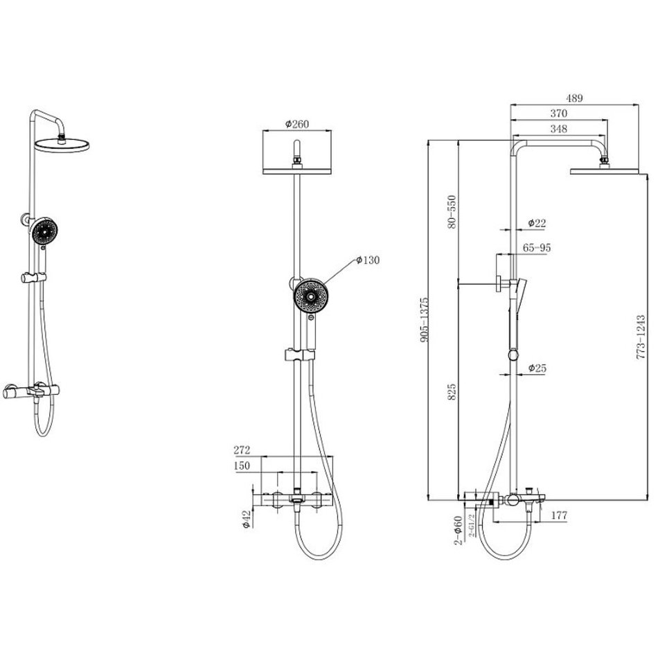 - регулируемая душевая штанга из нержавеющей стали, выдвигающаяся до 1375 мм в высоту