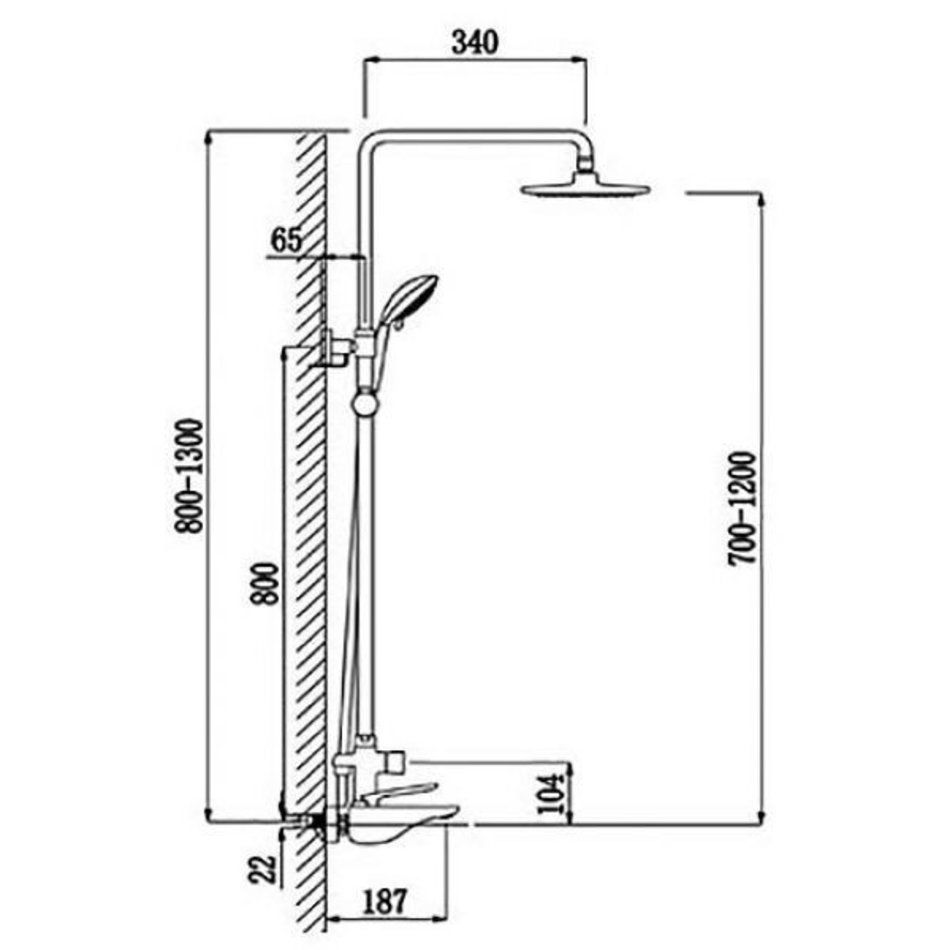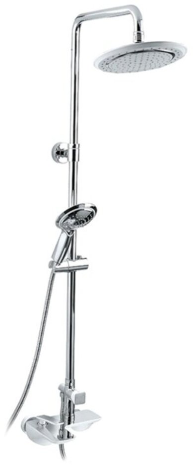 - Комплектация: смеситель, штанга, ручной душ, шланг, верхний душ