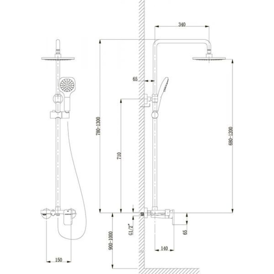 - Комплектация: смеситель, штанга, ручной душ, шланг, верхний душ